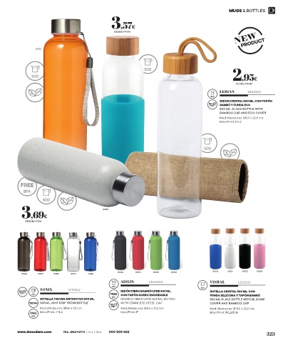 BOTELLA TRITAN ANTIGOTEO 500 ML. BPA BAMBOO FIBER/LPDE 600 ML. BOTTLE 500 ML.GLASS BOTTLE WITH SILICONE