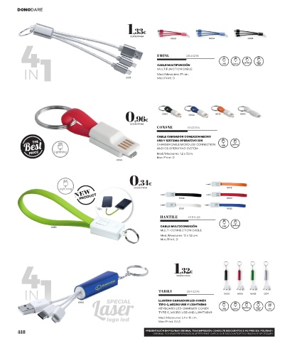 Laser LLAVERO CARGADOR LED CONEX USB Type C Lightning Micro Led